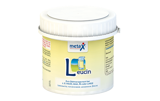 Lebensmittel für besondere medizinische Zwecke (bilanzierte Diät) zum Diätmanagement bei seltenen angeborenen Stoffwechselstörungen, z. B. Ahornsirupkrankheit (MSUD), Methylmalonacidurie (MMA), Propionacidurie (PA) oder LARS2-Defekt, wenn eine Ergänzung mit L-Leucin erforderlich ist.